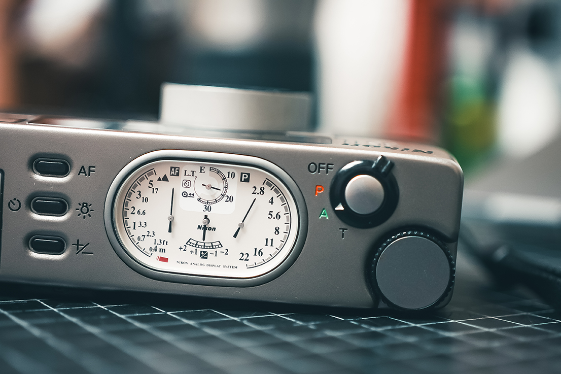 Another option was the Nikon 35Ti, a premium titanium-bodied point-and-shoot camera released in 1993 as Nikon’s answer to the Contax T2. Nikon aimed to set the 35Ti apart as a luxury camera with features such as a distinctive top-mounted analog display designed like a watch face, advanced 3D matrix metering, aperture priority, and rapid autofocus—making it well-suited for street and travel photography. The analog display on the top of the camera provides all shooting information, including aperture, focusing distance, number of exposures, and exposure compensation.